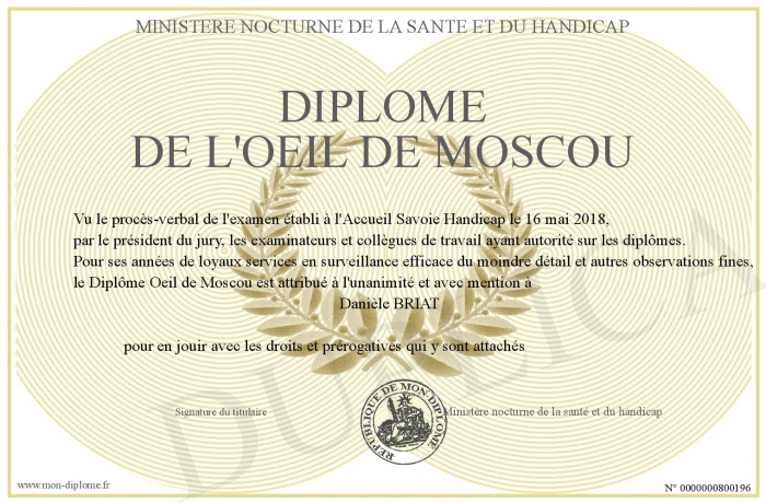 Envoyez par email votre Diplôme de l'Oeil de Moscou personalisé