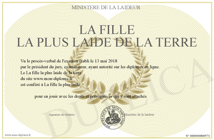 Envoyez par email votre La fille la plus laide de la terre personalisé