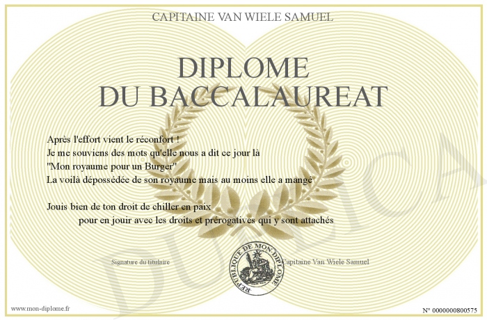 Envoyez par email votre Diplôme du baccalauréat personalisé