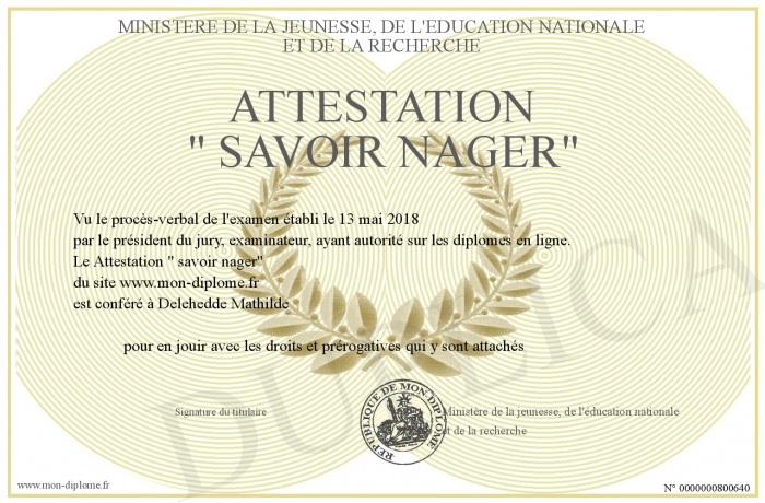 Envoyez par email votre Attestation - savoir nager- personalisé