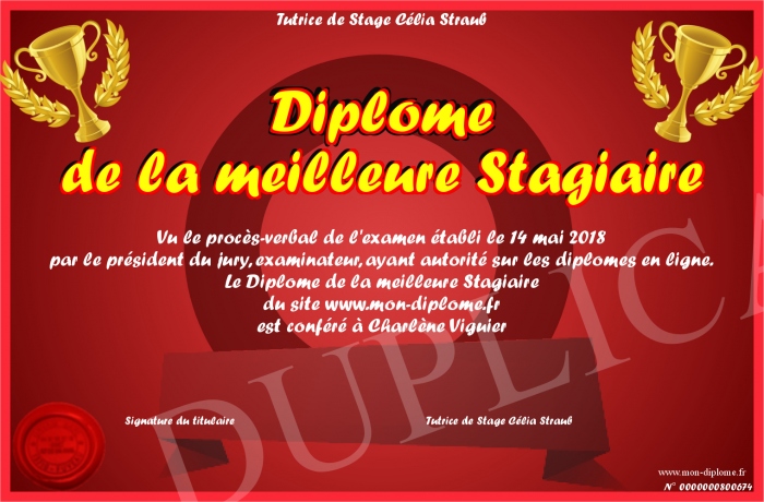 Envoyez par email votre Diplôme de la meilleure Stagiaire personalisé