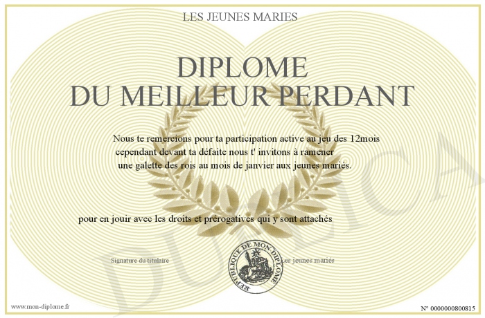Envoyez par email votre Diplôme du meilleur perdant personalisé