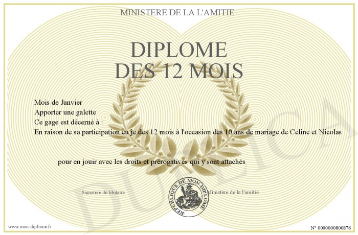 Envoyez par email votre Diplôme des 12 mois personalisé