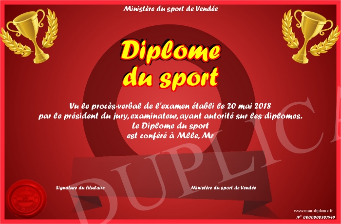 Envoyez par email votre Diplôme du sport personalisé