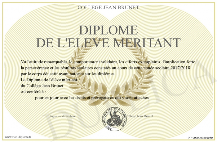 Envoyez par email votre Diplôme de l'élève méritant personalisé