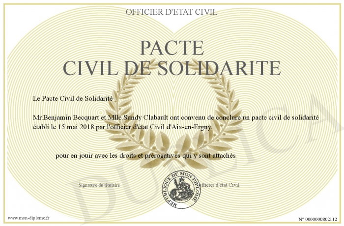 Envoyez par email votre Pacte Civil de Solidarité personalisé
