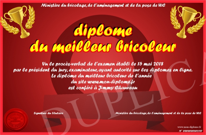 Envoyez par email votre diplôme du meilleur bricoleur personalisé