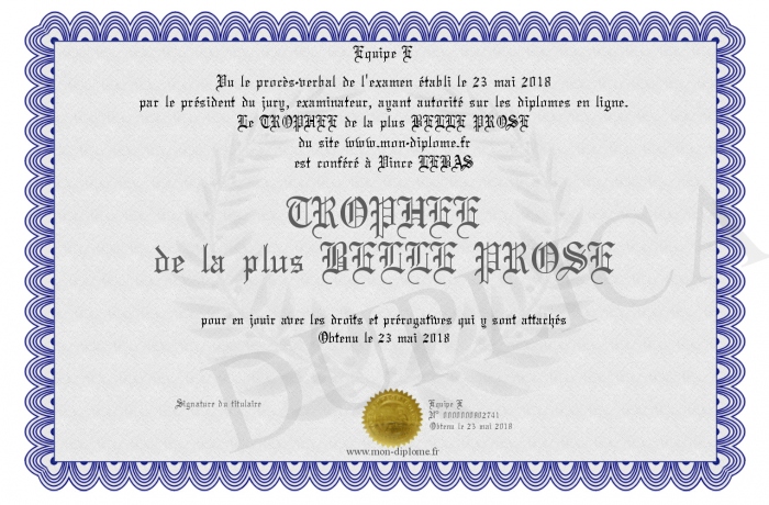 Envoyez par email votre TROPHEE de la plus BELLE PROSE personalisé