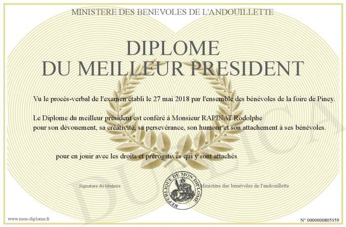 Envoyez par email votre Diplôme du meilleur président personalisé