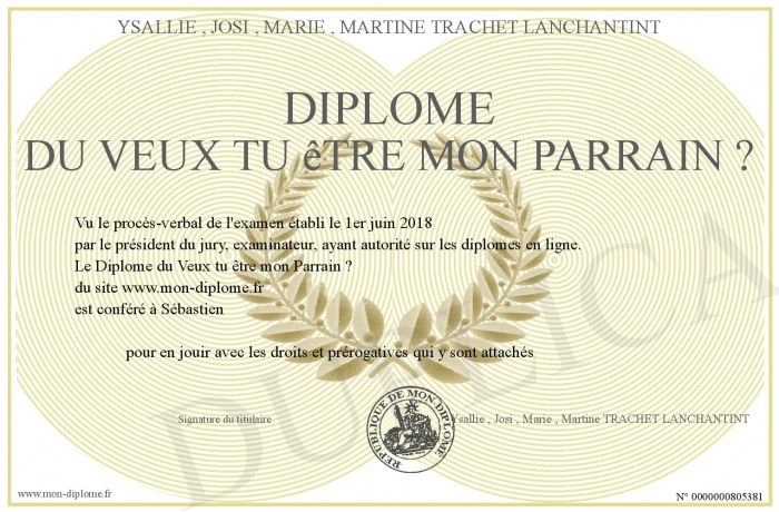 Envoyez par email votre Diplôme du Veux tu être mon Parrain ? personalisé