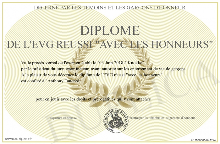 Envoyez par email votre Diplôme de l'EVG réussi -avec les honneurs- personalisé