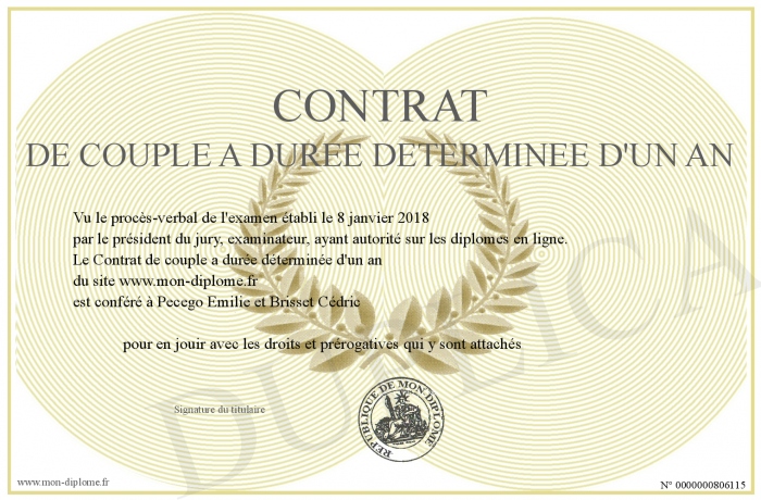 Envoyez par email votre Contrat de couple a durée déterminée d'un an personalisé