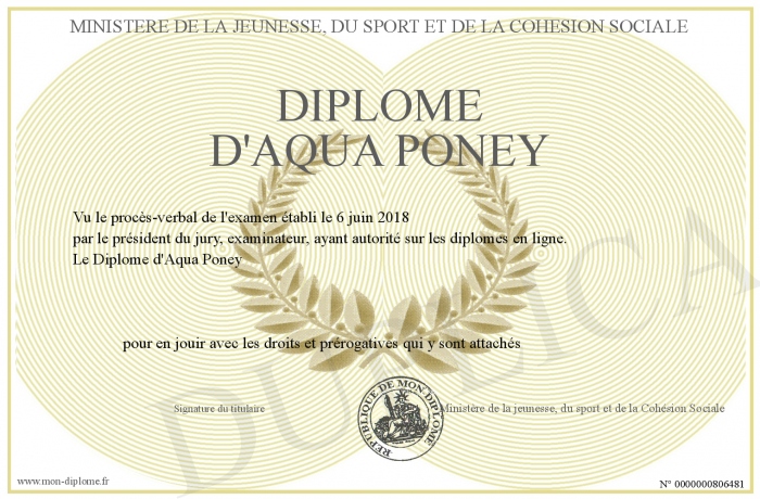 Envoyez par email votre Diplôme d'Aqua Poney personalisé
