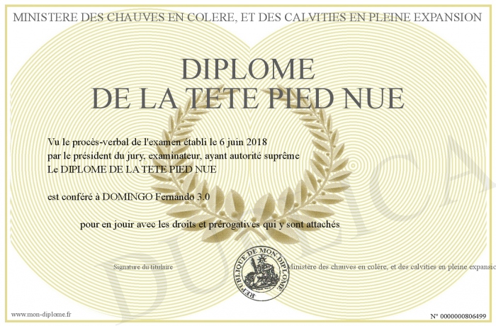 Envoyez par email votre DIPLOME DE LA TETE PIED NUE personalisé