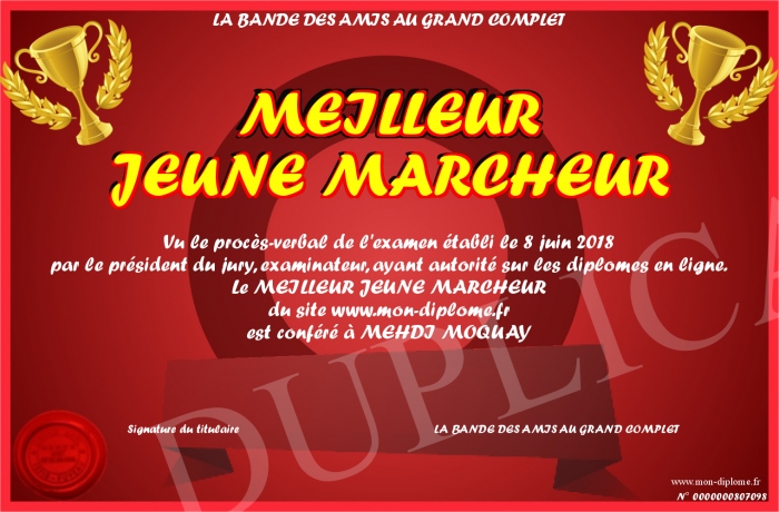 Envoyez par email votre MEILLEUR JEUNE MARCHEUR personalisé