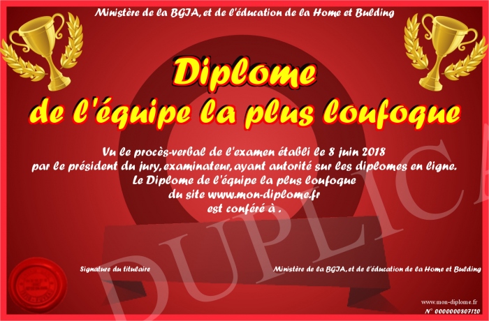 Envoyez par email votre Diplôme de l'équipe la plus loufoque personalisé