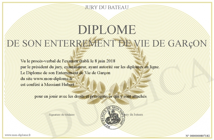 Envoyez par email votre Diplôme de son Enterrement de Vie de Garçon personalisé