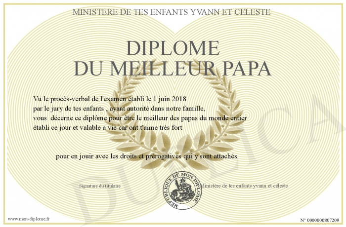 Envoyez par email votre Diplôme du meilleur papa personalisé