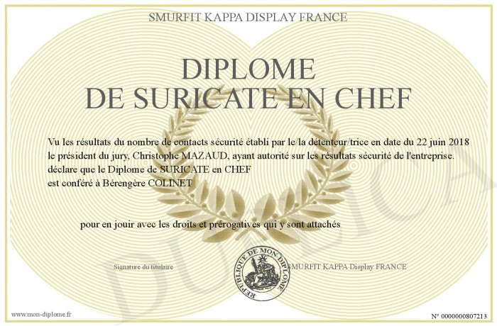 Envoyez par email votre Diplôme de SURICATE en CHEF personalisé