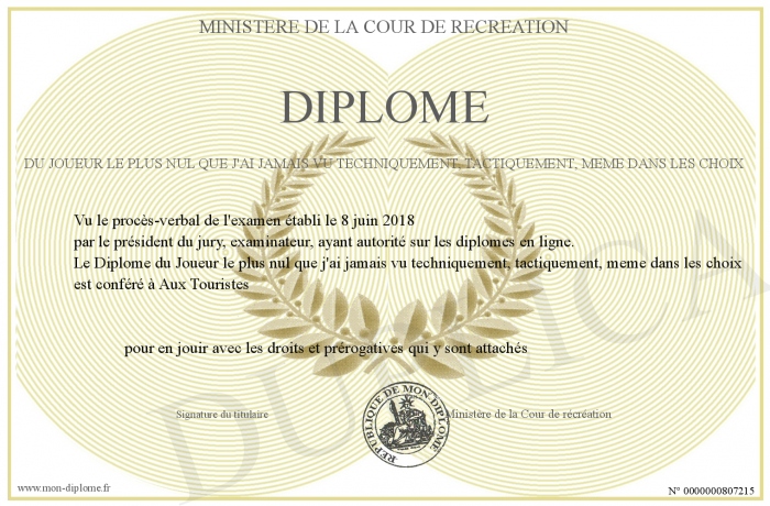 Envoyez par email votre Diplôme du Joueur le plus nul que j'ai jamais vu techniquement, tactiquement, meme dans les choix personalisé