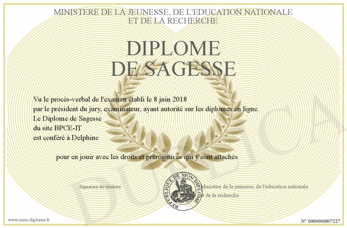Envoyez par email votre Diplôme de Sagesse personalisé