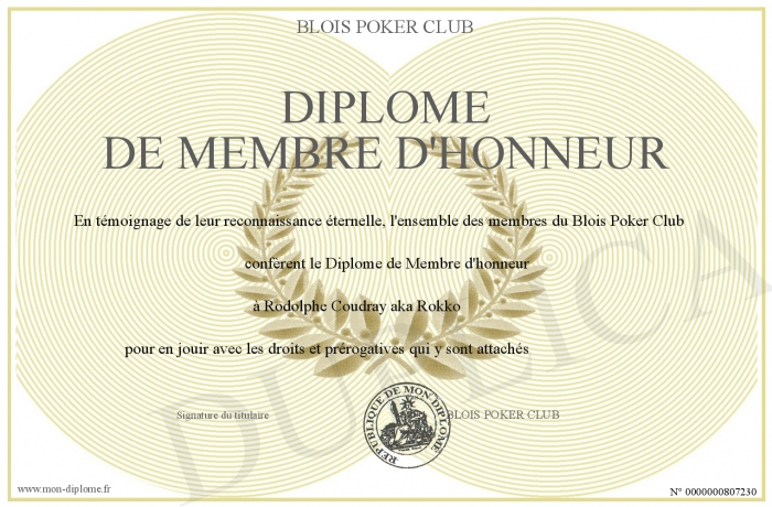 Envoyez par email votre Diplôme de Membre d'honneur personalisé