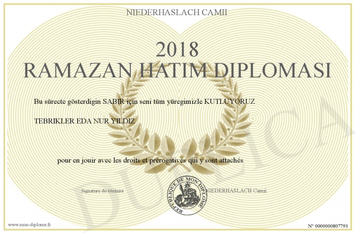 Envoyez par email votre 2018 Ramazan Hatim Diplomasi personalisé