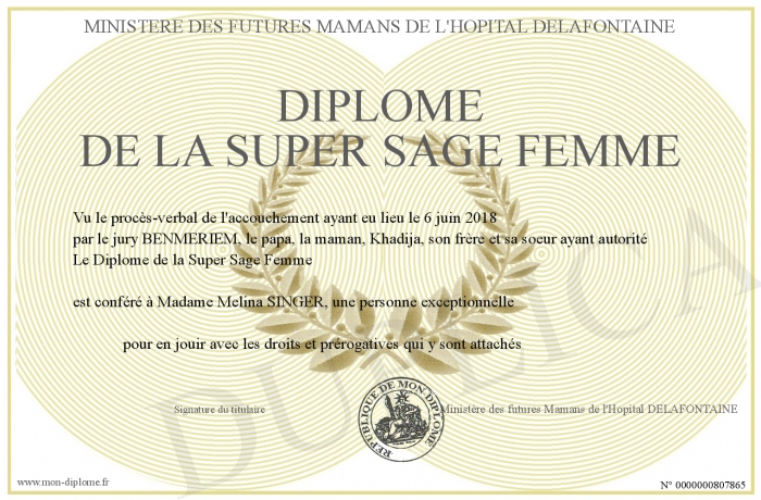 Envoyez par email votre Diplôme de la Super Sage Femme personalisé