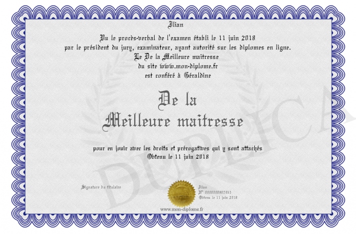 Envoyez par email votre De la Meilleure maitresse personalisé