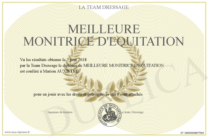 Envoyez par email votre MEILLEURE MONITRICE D'EQUITATION personalisé