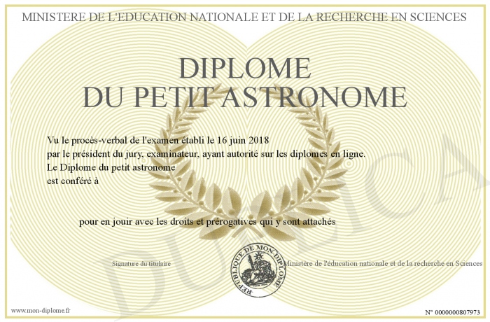 Envoyez par email votre Diplôme du petit astronome personalisé