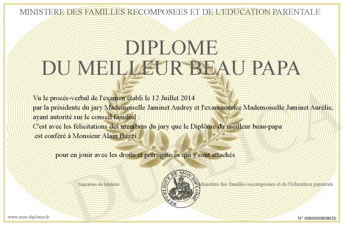 Envoyez par email votre Diplôme du meilleur beau papa personalisé