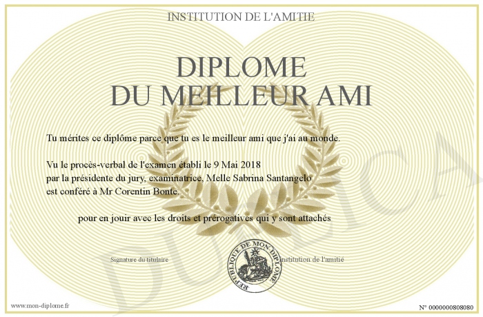 Envoyez par email votre Diplôme du Meilleur Ami personalisé