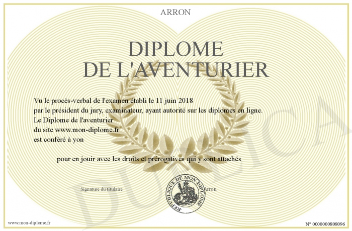 Envoyez par email votre Diplôme de l'aventurier personalisé