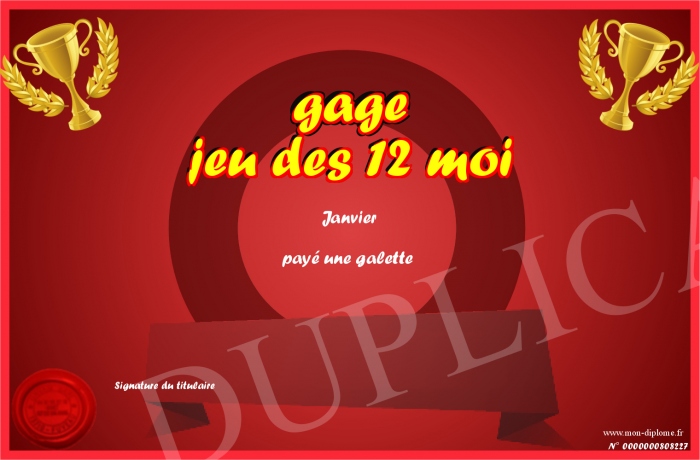 Envoyez par email votre gage jeu des 12 moi personalisé