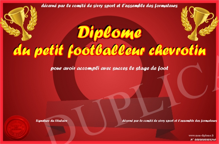 Envoyez par email votre Diplôme du petit footballeur chevrotin personalisé
