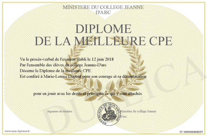 Envoyez par email votre Diplome de la meilleure CPE personalisé