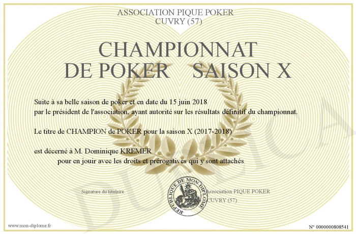 Envoyez par email votre CHAMPIONnat de poker saison X personalisé