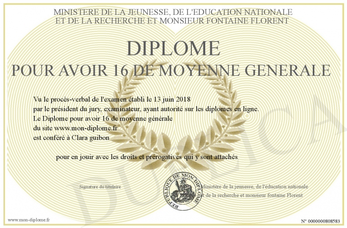 Envoyez par email votre Diplôme pour avoir 16 de moyenne générale personalisé