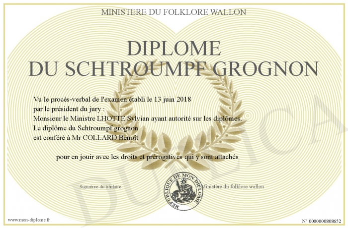 Envoyez par email votre Diplome du Schtroumpf grognon personalisé
