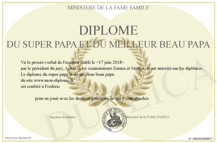Envoyez par email votre diplôme du super papa et du meilleur beau papa personalisé
