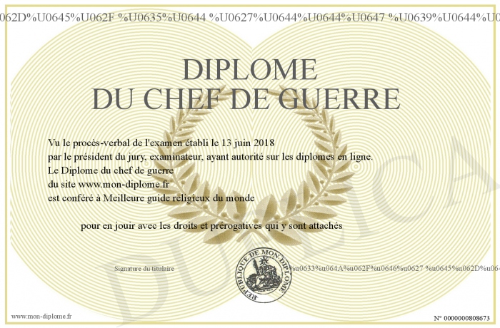 Envoyez par email votre Diplôme du chef de guerre personalisé