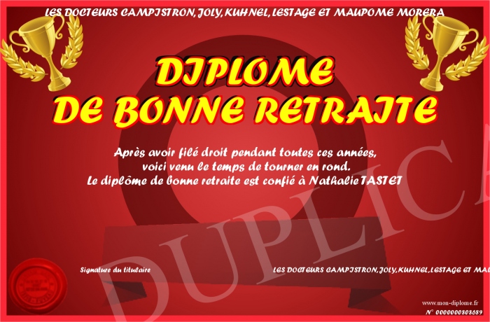 Envoyez par email votre DIPLOME DE BONNE RETRAITE personalisé