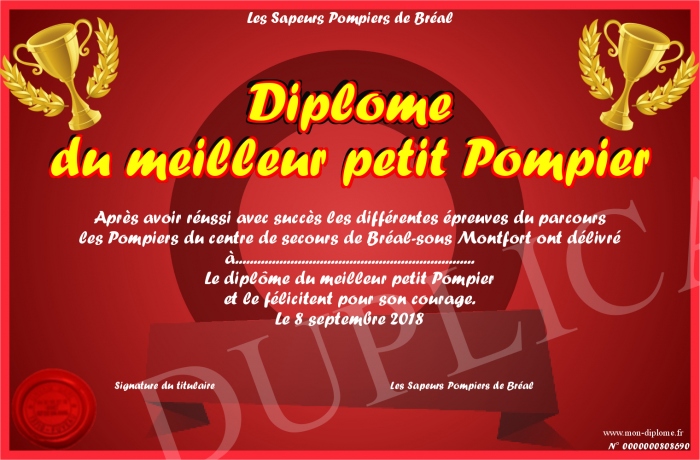 Envoyez par email votre Diplôme du meilleur petit Pompier personalisé