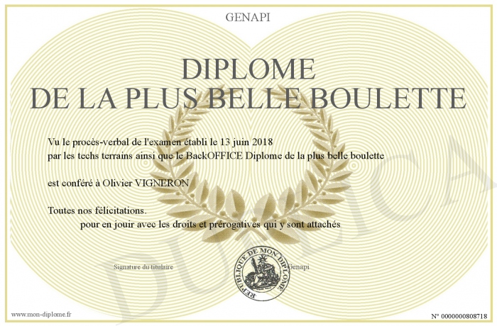 Envoyez par email votre Diplôme de la plus belle boulette personalisé