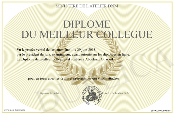 Envoyez par email votre Diplôme du meilleur collègue personalisé