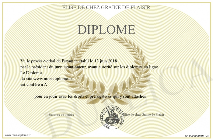 Envoyez par email votre Diplôme personalisé