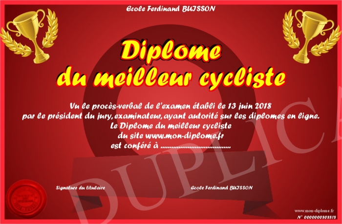 Envoyez par email votre Diplôme du meilleur cycliste personalisé