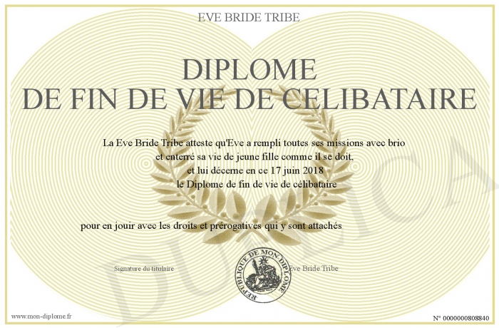 Envoyez par email votre Diplôme de fin de vie de célibataire personalisé