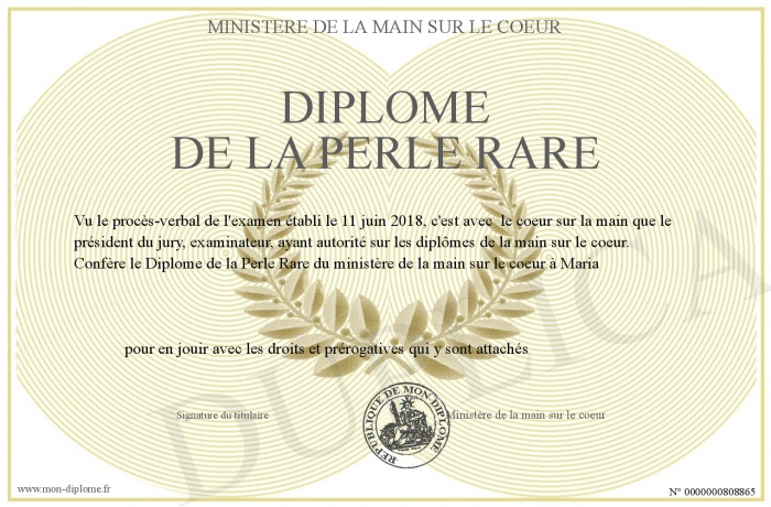 Envoyez par email votre Diplôme de la Perle Rare personalisé